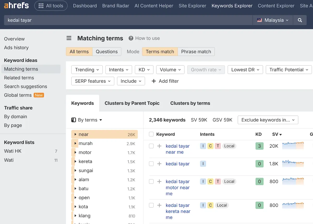 - Language Considerations: Many Malaysians search using a mix of English and Bahasa Melayu (BM), so it’s important to conduct keyword research in in both languages, such as checking on terms such as “Kedai Tayar” alongside “Tyre Shop”.